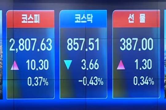 코스피는 전 거래일보다 10.30포인트(0.37%) 상승한 2,807.63으로 마감했다. 매매 동향을 살펴보면, 개인 투자자 홀로 5,699억 원을 팔았고, 외국인과 기관이 각각 4,782억 원과 1,670억 원을 사며 매수 우위를 보였다.