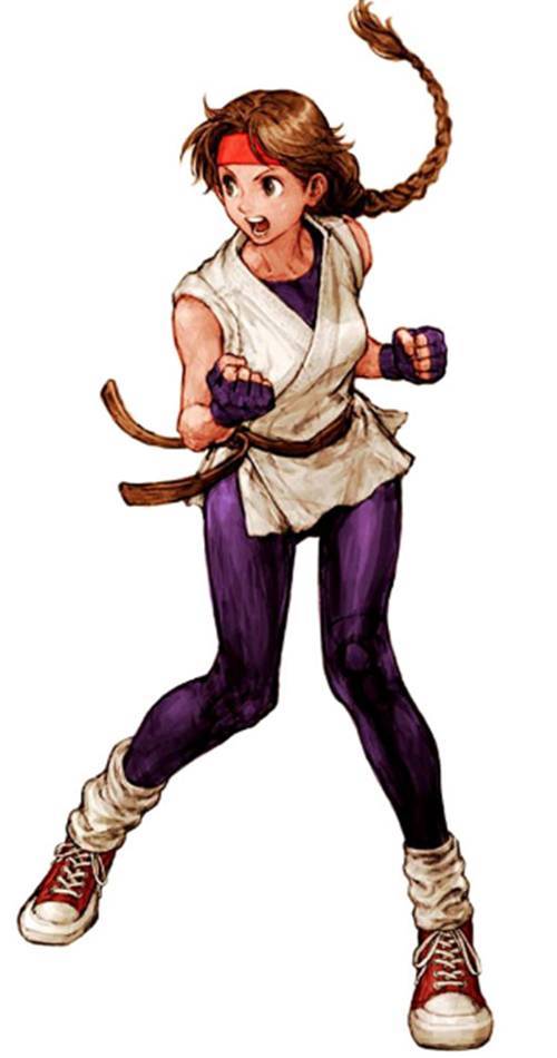 검떠 : 다음은 SNK의 명작 격투 게임 시리즈 '용호의 권 2'에 등장하는 유리 사카자키 입니다. 게임 내 히로인이자 말괄량이 캐릭터로 표현된 여성 캐릭터죠. 게임 내에서 강하다고 평가받지는 못했지만, 특유의 싸대기 기술이 일품인 캐릭터였죠.