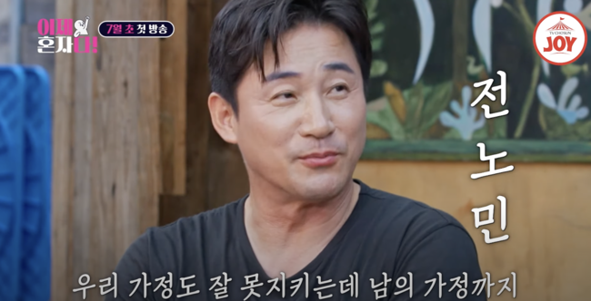 배우 전노민은 "우리 가정도 잘 못 지키는데 남의 가정까지.. 배 밖에 더 아프겠니?”란 자조 섞인 이야기를 한다. TV CHOSUN 드라마 ‘결혼작사 이혼작곡’ 시리즈, MBC ‘세 번째 결혼’ 등 데뷔 29년 차에도 활발히 활동 중인 전노민은 ‘이제 혼자다’를 통해 처음으로 자신의 일상을 공개한다. 전노민은 2004년 9살 연상의 배우 김보연과 재혼했으나 2012년 이혼했다.