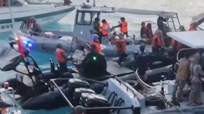 지난 17일 남중국해 세컨드 토마스 암초, 중국명 런아이자오 부근 해역에서 중국 해경의 공격을 받았다며 필리핀 해군이 공개한 영상입니다.