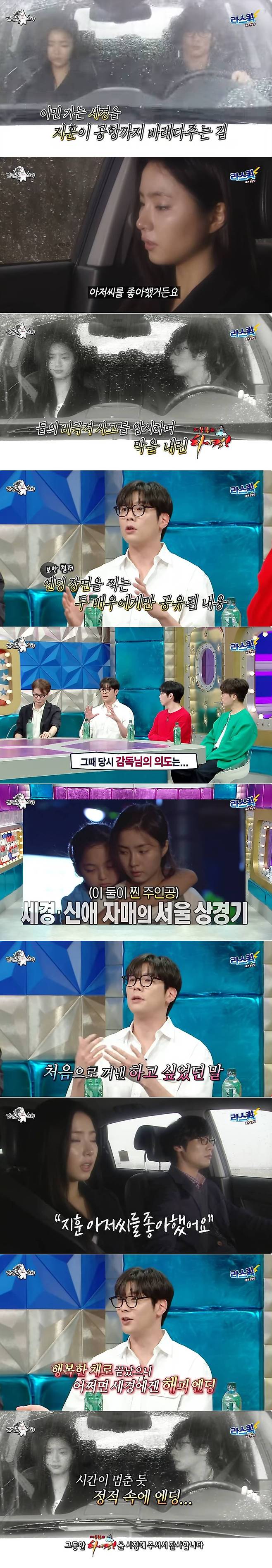 이어 "그 당시의 감독님의 의도는 세경, 신애의 서울 상경기다. 두 사람이 주인공이다. 세경이가 말도 못하고 움츠려있는 설정이다 보니까 처음으로 자신이 하고 싶은 말을 하는 행복한 순간에. 제일 행복할 때 엔딩을 하는 거였다. 사실 세경이의 해피엔딩이었다"라고 말해 이목을 모았다.