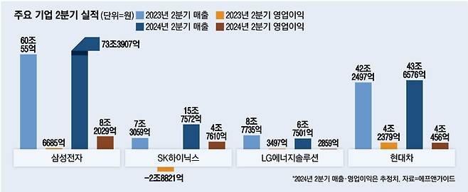 SK하이닉스 역시 2분기 매출액 15조7572억원과 영업이익 4조7610억원으로, 매출액은 전년 동기 대비 115.7% 상승하고 영업이익은 흑자로 전환할 것이라는 전망이 나왔다. SK하이닉스는 지난해 2분기에는 2조8821억원의 영업적자를 낸 바 있다.