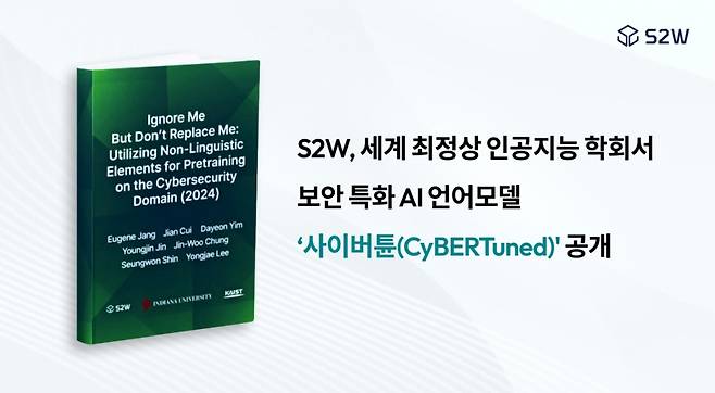 데이터 인텔리전스(해석·예측·최적화) 전문기업 S2W(에스투더블유)가 세계 3대 인공지능(AI) 학회로 꼽히는 북미 전산언어학학회(NAACL)에서 사이버보안 문서에 특화된 AI 언어모델을 공개했다고 20일 밝혔다.