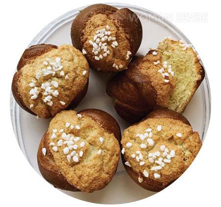 브리오슈는 ‘부드러운’을 의미하는 프랑스어 ‘브리오슈(Brioche)’에서 유래한다. 전설에 따르면 노르망디의 한 국왕에게 특별한 빵을 만들어달라는 요청을 받은 제빵사가 국왕을 위해 재료를 아낌없이 넣어 만든 부드럽고 달콤한 빵이 오늘날의 브리오슈가 됐다. 브리오슈는 처음 알려졌을 때 ‘킹스 브레드(King’s Bread)’라고 불렸는데, 그 당시 귀족이나 왕족이 아니면 감당하기 어려울 정도로 많은 양의 버터와 달걀이 사용됐기 때문이란다. 질 좋은 버터 산지로 유명한 노르망디 지역에서 버터 향 가득한 브리오슈가 만들어졌는데 ‘반죽을 치대다’라는 뜻의 노르망디 방언 ‘브리에(Brier)’에서 브리오슈라는 말이 파생됐다고 전해지기도 한다.