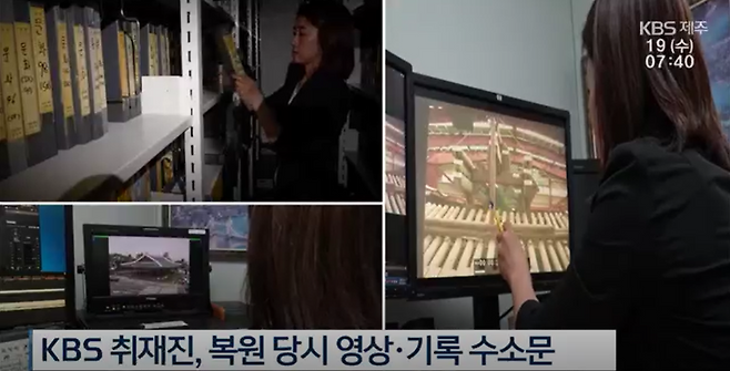 취재진은 우선 KBS 제주방송총국 자료실에 있는 과거 관덕정 복원 영상에서부터, 당시 문화재청의 수리 기록까지 찾아 나섰습니다