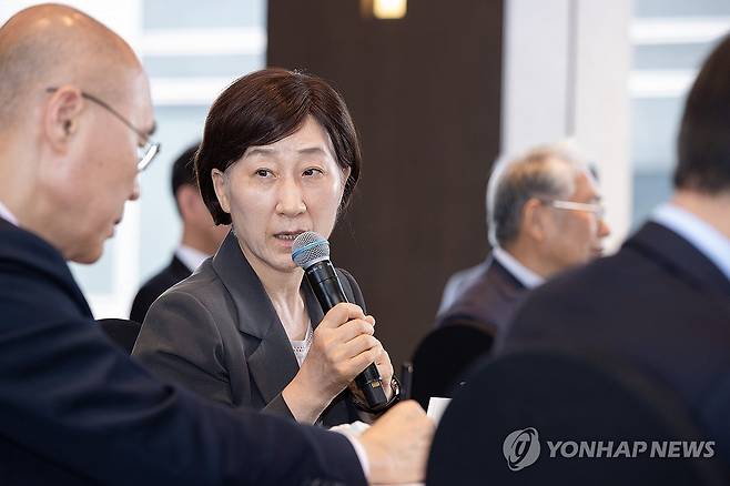 (서울=연합뉴스) 한화진 환경부 장관이 21일 서울 중구 더플라자호텔에서 열린 환경연구기관장협의회와의 간담회에서 발언하고 있다. 2024.6.21 [환경부 제공. 재판매 및 DB 금지]