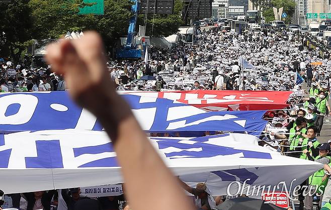 | ▲ [18일 화] 대한의사협회가 서울 영등포구 여의대로에서 '의료농단 저지 전국 의사 총궐기 대회'를 하고 있다. 전면 집단휴진이 들어간 대한의사협회는 '정부가 죽인 의료, 의사가 살리기위해 잠시 멈춤'이라는 구호를 내걸고 "현장의견 무시하는 불통정책 철회! 근거없는 증원정책 원점에서 검토!" 등을 요구하며 윤석열 정부의 정책을 성토했다. |
