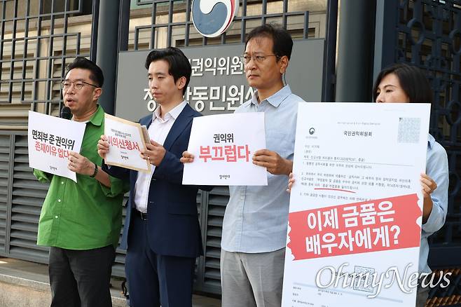 | ▲ [19일 수] 서울 종로구 국민권익위원회 정부합동민원센터 앞에서 열린 대통령 부부 명품 수수 신고사건 종결 처리에 대한 이의신청 및 기자회견에서 참여연대 관계자들이 손팻말을 들고 있다. 권익위는 지난 10일 참여연대가 윤 대통령 부부와 명품가방을 건넨 최재영 목사를 청탁금지법 위반으로 신고한 사건에 대해 위반 사항이 없다며 종결 처리했다. |