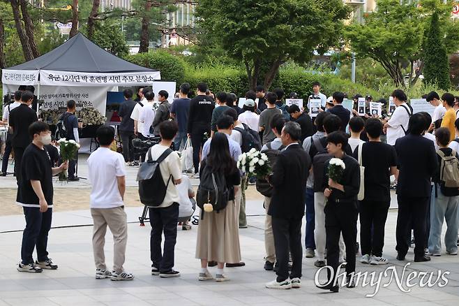 | ▲ [19일 수] '육군 12사단 얼차려 가혹행위 사망사건, 고 박 훈련병 시민 추모 분향소'가 박 훈련병과 함께 입대했던 동료들의 훈련소 수료식이 있던 이날 서울 용산역 광장에 설치되자 시민들이 헌화하기 위해 길게 줄을 서 있다. 군인권센터에서 마련한 이 분향소에서 유가족이 시민들을 직접 맞았으며 이날 오후 8시까지 운영되었다. |
