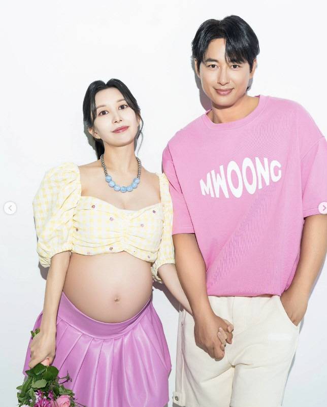 공개된 사진 속에는 이지훈 아야네 부부의 만삭화보가 담겼다. 두 사람은 분홍색 옷을 맞춰 입고 배를 감싸 안은 채 사랑스러운 만삭 화보를 찍었다. 특히 B컷임에도 A컷 같은 자연스러운 표정과 포즈가 눈길을 모은다.