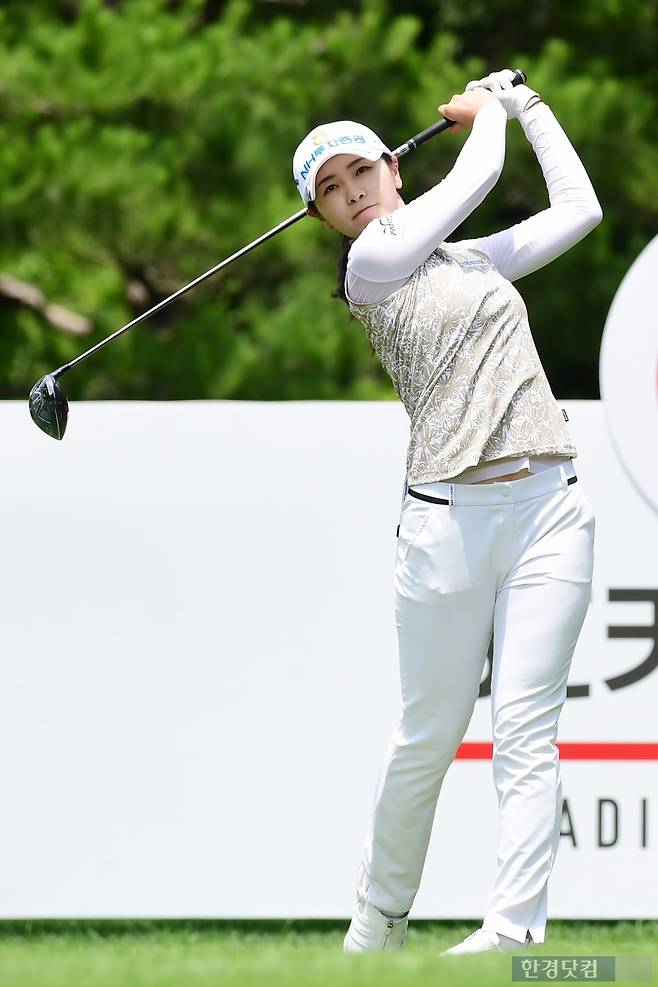 한국여자프로골프(KLPGA)투어 ‘BC카드·한경 레이디스컵 2024’ 2라운드 경기가 21일 경기도 포천시 포천힐스CC에서 열렸다. 대회에 출전한 이가영이 1번 홀에서 티샷하고 있다.