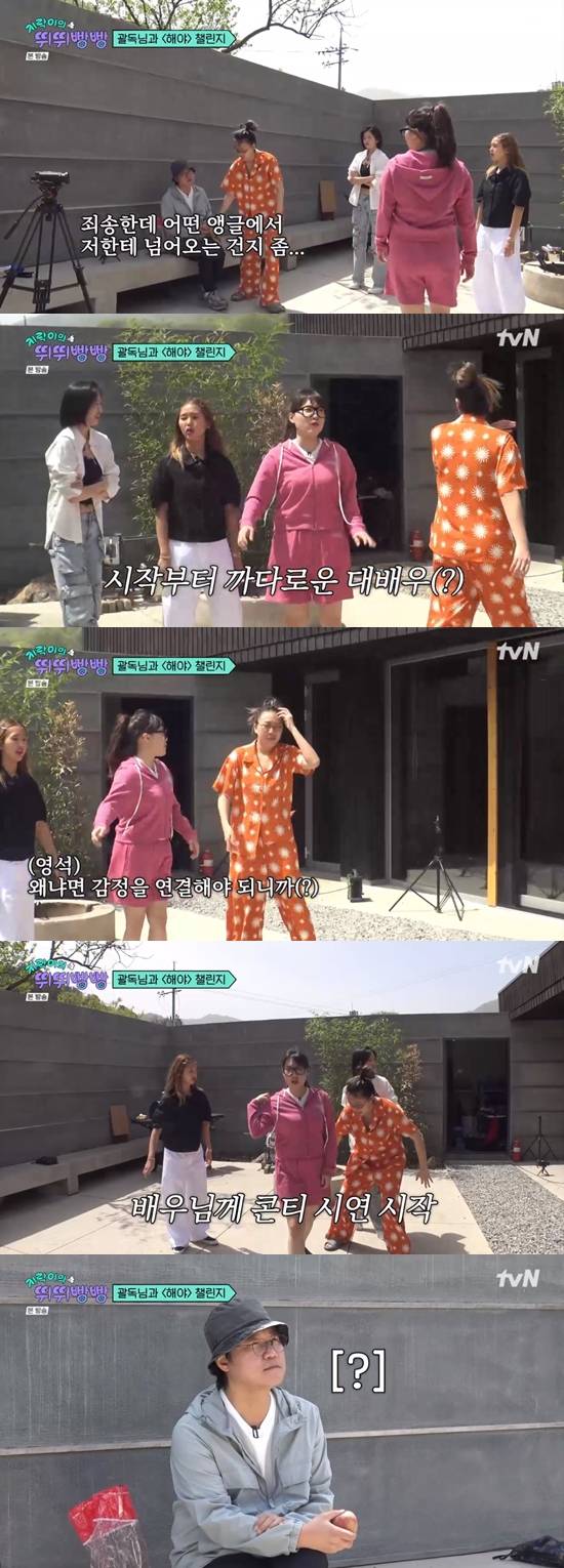 '해야' 챌린지에 돌입한 지락이들은 상황극에 돌입했다. 감독 역할을 맡은 이영지는 나PD에게 "너무 꿍해 있지 않냐"고 지적하며 몰입도를 높였다.