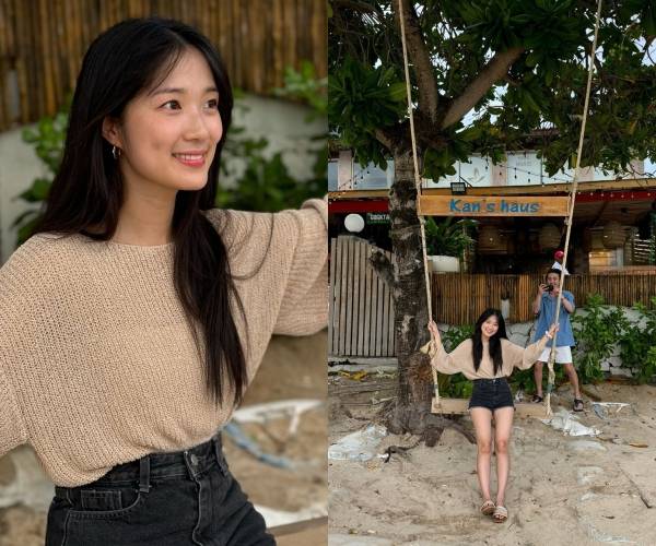 사진 속에서 김혜윤은 해변에 설치된 그네를 타며 다양한 포즈를 취하고 있다. 김혜윤의 아름다운 모습이 담긴 사진들이었다.