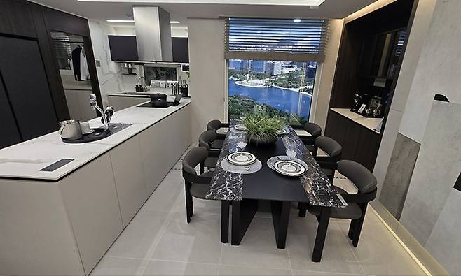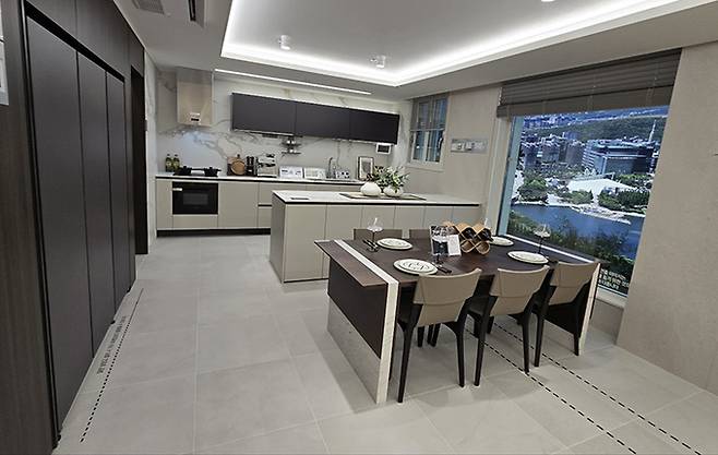 인테리어도 눈에 띈다. 각 타입별로 컨셉과 구조를 달리해 차별화했다. 84㎡A 타입은 ‘내추럴 모던 컨셉’으로 전체적으로 밝은 톤의 아이보리 색상과 주방 벽면 포인트를 적용해 편안하고 따뜻한 공간을 연출했다. 환기가 가능한 넓은 드레스룸을 갖춘 것이 특징이다. 99㎡A 타입은 ‘컨템포러리 모던 컨셉’으로 아이보리 색상의 밝은 톤을 중심으로 짙은 우드 톤의 가구와 목창호를 포인트 컬러로 활용해 세련되고 고급스러운 이미지를 연출했다. 와이드 통창이 주방부터 거실까지 배치돼 별도 다이닝룸에서는 전망을 감상하며 식사가 가능하다. 가족이 함께하는 시간이 더욱 풍요로워질 수 있는 설계를 반영한 것이 특징이다.