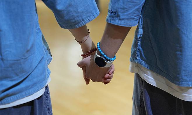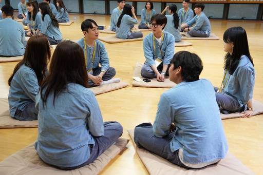 오후 2시쯤 한국문화연수원. 짐을 풀고 편한 템플스테이용 법복으로 갈아입은 전체 참가자가 점심 공양(식사) 후 큰선방에 모였다. 인기 TV 연애 프로그램 ‘나는 SOLO(솔로)’ 출연자처럼 본명 대신 가명이 적힌 명찰을 단 참가자들은 ‘저출산 대응 인식 개선’ 교육에 이어 자기소개 시간이 되자 긴장한 낯빛이었다. 수도권과 대구·강원·전북·세종 등 각지에서 온 이들은 군인, 군무원, 초등학교 교사, 변호사, 약사, 공공·금융기관·대기업 직원, 기자, 큐레이터, 해양경찰, 간호사, 항공사 승무원 등 직업도 다양했다. 하나같이 귀를 쫑긋 세우고 호감 후보군에 담아두려는 눈빛들이 튀었다.