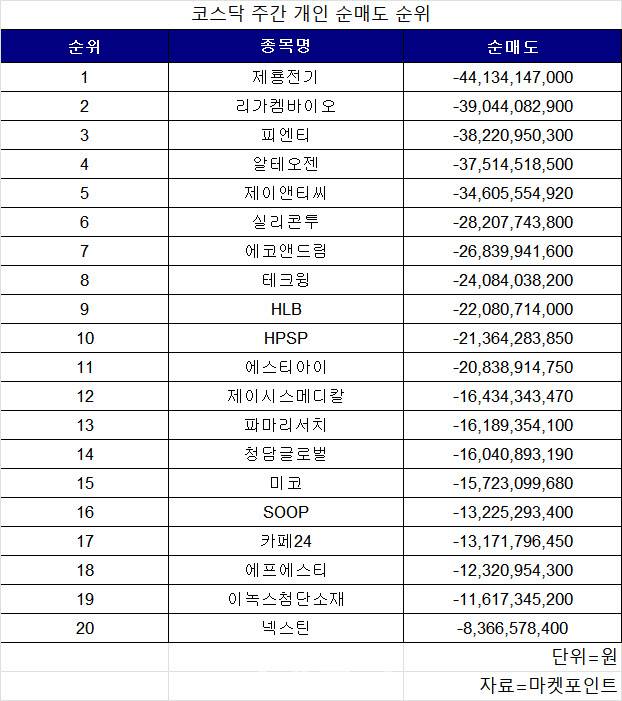 코스닥 주간 개인 순매도 1위 '제룡전기'