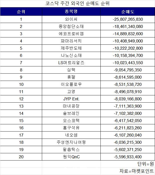 코스닥 주간 외국인 순매도 1위 '와이씨'