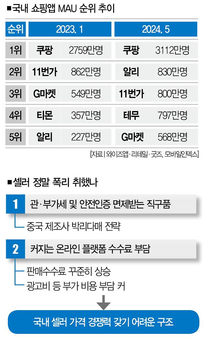 경쟁력 있는 제품을 판매하는 셀러가 많아야 국내 온라인 플랫폼의 경쟁력이 생기는 건 당연한 이치다. 중국 직구 플랫폼의 공세에 대응하기 위해선 지금에라도 국내 온라인 플랫폼의 구조를 다시 봐야 한다는 거다.