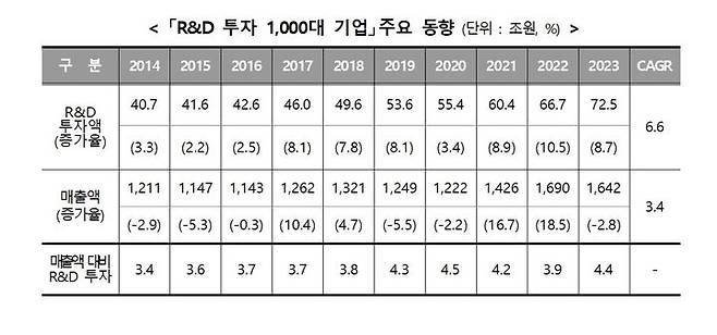 앞서 국내 1000대 기업은 지난 10년 간 R&D투자를 연 평균 6.6% 확대했다.