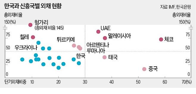 현시점에서 IMF의 모리스골드스타인지표와 글로벌 투자은행(IB)이 활용하는 외환상환계수로 신흥국 금융위기 가능성을 점검해 보면 아르헨티나, 베네수엘라, 터키, 파키스탄, 이란, 남아프리카공화국 등이 높게 나온다. 브라질, 인도네시아, 멕시코, 필리핀, 스리랑카, 방글라데시 등은 그다음 위험국이다.