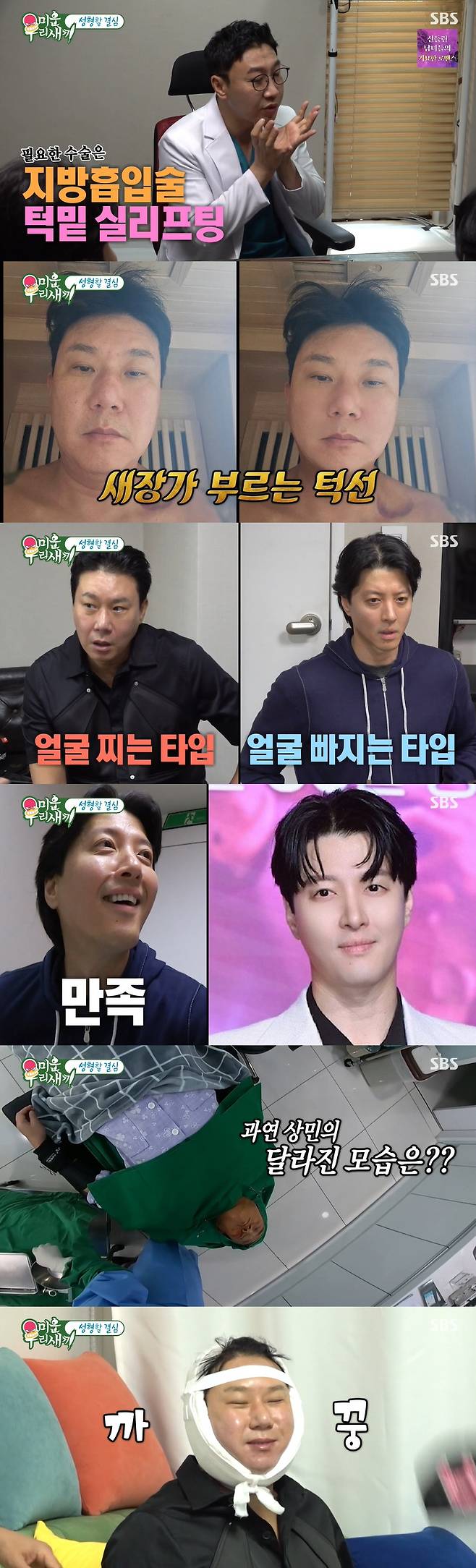 한편 턱살에 대해 진지하게 고민하던 이상민은 수술을 결심하고 바로 수술대에 올랐다. 2시간 후 수술을 마친 이상민은 붕대를 감고 퉁퉁 부은 얼굴로 나타나 놀라움을 안겼다.