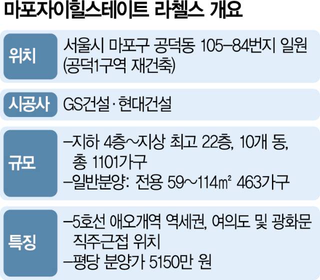 GS건설은 서울시 마포구 공덕동 105-84번지 일원에 들어서는 ‘마포자이힐스테이트 라첼스(공덕1구역 재건축)’의 견본주택을 이달 28일 열고 본격 분양에 돌입한다고 23일 밝혔다.