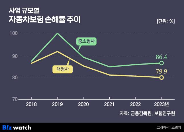 보험연구원은 "보험료 인하 효과 지속, 인플레이션 상승 등에 따른 사고심도 증가 등으로 손해율은 다소 악화될 가능성이 크다"며 "올해 보험료 인하 폭이 이전보다 더 크고 대형사가 중소형사에 비해 인하 폭이 다소 큰 점을 고려할 때 향후 대형사의 손해율도 악화할 가능성이 크다"고 분석했다.