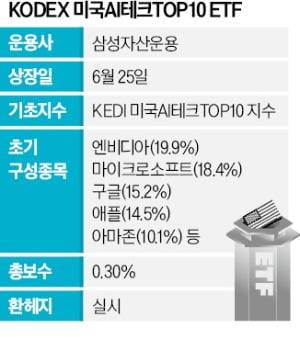 KODEX 미국AI테크TOP10은 설정 초기 엔비디아(비중 19.9%), MS(18.4%), 구글(15.2%), 애플(14.5%), 아마존(10.1%), 브로드컴(5.9%), 메타(5.7%), TSMC(4.7%) 등을 편입한다.