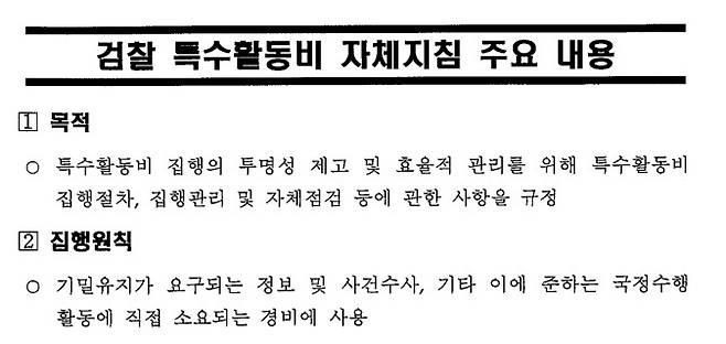 법무부는 심지어 검찰 특수활동비와 관련한 자체 지침의 원본을 국회에 제출하는 것조차 거부했다. 특수활동비를 어디에 어떻게 썼는지를 밝히기는커녕 지침의 공개마저도 거부한 것이었다.