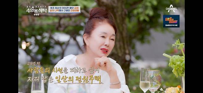 24일 채널A 예능 프로그램 '절친 토큐멘터리 4인용식탁(이하 '4인용식탁')에는 배우 김청이 게스트로 출연했다.