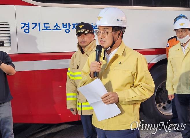 이날 김동연 경기도지사는 "불의의 사고로 희생되신 희생자분들의 명복을 빈다"라고 입을 연 뒤 사고 수습 대책을 발표했다.