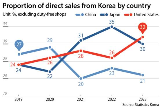 Industry experts are looking at the United States and Japan as alternative markets to China. The proportion of reverse direct purchases to China decreased to 21 percent in 2023 from 29 percent in 2020. In contrast, the United States accounted for 32 percent, making it the largest market, followed by Japan at 30 percent.