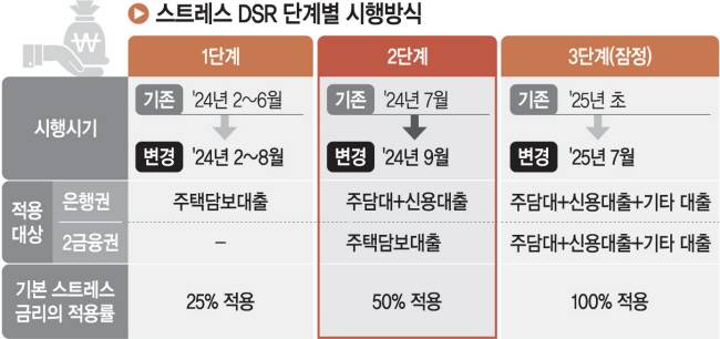 금융위는 그러나 다음 달부터 추진하기로 했던 2단계 적용을 오는 9월로 미루고, 3단계 적용도 내년 초에서 내년 7월로 연기하기로 결정한 것이다. 연기 이유에 대해 금융위는 우선 취약차주의 어려움을 꼽았다.