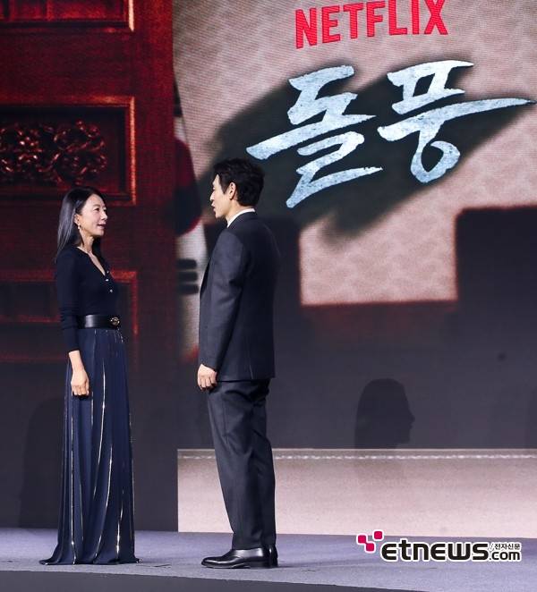 배우 김희애, 설경구가 25일 서울 종로구 JW 메리어트 동대문 스퀘어 서울에서 진행된 넷플릭스 시리즈 '돌풍' 제작발표회에 참석했다.