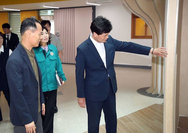 [밀양=뉴시스] 안병구 경남 밀양시장이 24일 현장행정을 통한 주도적 특화 발전 추진을 위해 밀양아리솔학교를 방문해 시설을 살펴보고 있다. (사진=밀양시 제공) 2024.06.25. photo@newsis.com