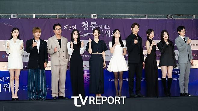 [TV리포트=오민아 기자] 배우 신예은, 박지훈, 하정우, 임지연, 수지, 송혜교, 덱스, 주현영, 김아영, 유재석이 25일 오후 인천 중구 상상플랫폼에서 진행된 제3회 청룡시리즈어워즈 핸드프린팅에 참석해 포즈를 취하고 있다.