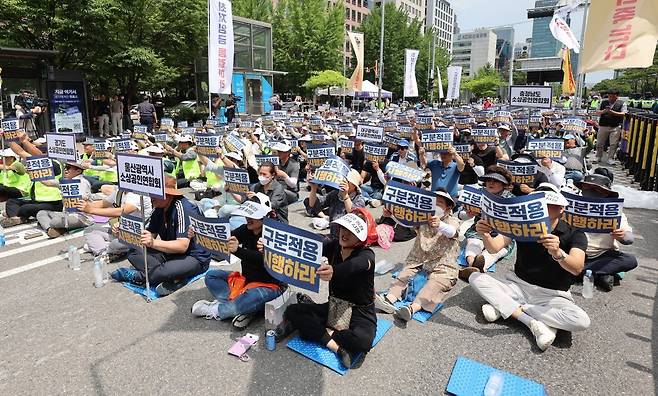이날 모인 소상공인들은 결의문 낭독을 통해 최저임금 구분적용 의지를 강조했다. 이들은 ‘최저임금 구분적용’ 글자가 담긴 얼음 조각을 부수는 퍼포먼스를 진행했다. 소상공인연합회는 다음달 2일 정부 세종청사 고용노동부 건물 앞에서 관련 기자회견을 이어갈 예정이다.