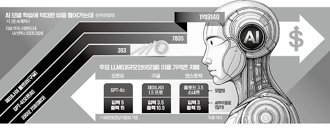 생성 AI는 지금까지 등장한 IT 가운데 가장 ‘비싼’ 기술로 꼽힌다. 생성 AI를 개발하기 위해선 방대한 양의 데이터, AI 학습과 추론을 위한 그래픽처리장치(GPU) 등 칩셋, AI 전문 엔지니어 등이 필요하다. 지난해 구글 모회사 알파벳의 존 헤네시 이사회 의장은 “생성 AI를 활용한 검색 비용이 일반 검색 비용보다 10배 더 높다”고 말했다. 미국 스탠퍼드대의 AI 인덱스 리포트에 따르면 구글이 투입하는 제미나이 울트라 학습 비용은 1억9140만달러(약 2645억원), 오픈AI의 GPT-4는 7835만달러(약 1080억원)에 달하는 것으로 추정됐다.