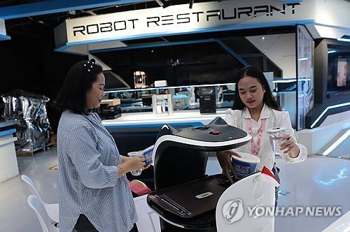 epa11435941 Visitors take cups of water served by a robotiv waiter at a Robot Restaurant set up at a Robotic Park in Jakarta, Indonesia, 25 June 2024. The Indonesian government is encouraging progress in the field of robotics in the country in line with the rapid development of robotic technology supported by developments in artificial intelligence (AI). Indonesia has many educational institutions that teach robotics and there are even schools that put a spotlight on the field of robotics. EPA/ADI WEDA
