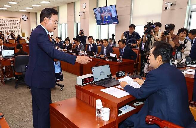 여당 간사로 내정된 유 의원이 정 위원장에게 "'위원장 마음대로'가 국회법이냐"고 따지자 말싸움이 벌어졌고, 검사 출신인 유 의원이 국회법 공부는 본인이 낫지 않겠냐고 받아치자 여당 의원들 사이에서 웃음이 터져나왔다.