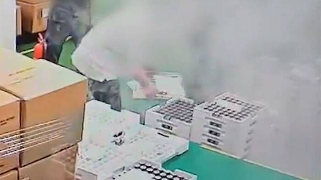 불이 나자, 배터리가 잇달아 폭발하는데도 직원들이 대피하지 않고 배터리 상자를 옮기는 모습도 CCTV 화면에 담겼습니다.