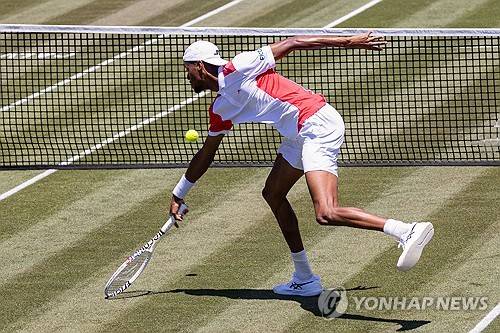 epa11436235 Christopher Eubanks of USA in action during his second round match against Jakub Mensik of Czech Republic at the Mallorca Championships tennis tournament, in Santa Ponsa, Balearic Islands, Spain, 25 June 2024. EPA/Cati Caldera
