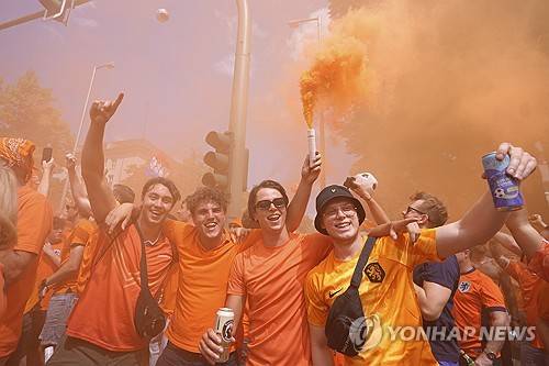 Dutch fans gather before a Group D match between the Netherlands and Austria at the Euro 2024 soccer tournament in Berlin, Germany, Tuesday, June 25, 2024. (AP Photo/Sunday Alamba)