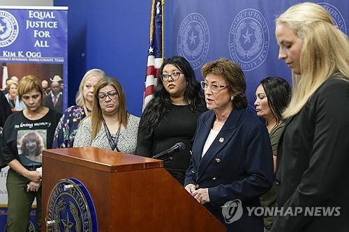 CORRECTS NAME: District Attorney Kim Ogg speaks to the media during a news conference after Franklin Peña, one of the two men accused of killing 12-year-old Jocelyn Nungaray, appeared in court, Monday, June 24, 2024, in Houston. Peña was ordered held on $10 million bail as he and another man, Johan Jose Martinez-Rangel, are charged with capital murder over the girl's death. (Brett Coomer/Houston Chronicle via AP) CORRECTS NAME: CHRON.COM OUT; MANDATORY CREDIT