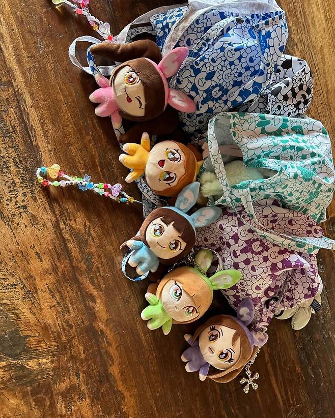 뉴진스의 일본 첫 팬미팅이 열리는 26일부터 서울 라인프렌즈 스퀘어 명동과 일본 도쿄 라인프렌즈 스퀘어 시부야에서는 이 MD들이 구매 가능한 팝업스토어가 열립니다. 충격적인 귀여움으로 화제가 됐던 무라카미 다카시 버전 뉴진스 캐릭터가 인형, 스마트톡, 키링 등에 담기는데요. 멤버 해린은 벌써 자신과 꼭 닮은 캐릭터 스마트톡을 사용하고 있는 모습이네요.