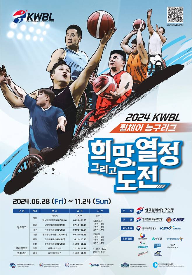 올해로 10회째를 맞이한 '2024 한국휠체어농구연맹(KWBL) 휠체어농구리그'가 오는 28일 코웨이 블루휠스와 춘천 타이거즈의 개막전으로 기지개를 켠다.