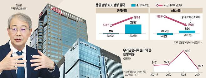 우리금융그룹이 중국 다자보험그룹이 보유 중인 동양생명과 ABL생명(옛 알리안츠생명)을 인수한다. 2014년 우리아비바생명을 매각한 후 10년 만에 보험업에 다시 진출하는 것이다. 임종룡 우리금융그룹 회장 취임 후 숙원으로 삼아온 비은행 부문 강화를 위해 조(兆) 단위 인수합병(M&A)으로 승부수를 던졌다는 평가가 나온다.