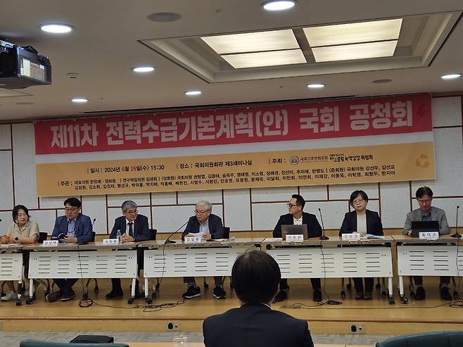 26일 오후 국회기후변화포럼(대표: 한정애 의원, 정희용 의원)과 대통령 직속 2050 탄소중립녹생성장위원회가 주최한 '제11차 전력수급기본계획(안) 국회 공청회'가 국회의원회관 제3세미나실에서 열렸다.