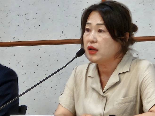 | ▲ 최경숙 팀장 ▲ 발언하는 환경운동연합의 최경숙 에너지 기후팀장 |