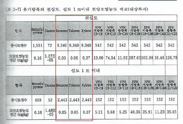 보고서는 별도의 환경조사 없이 만들어졌다. 2021년 환경부가 수행했던 환경조사 및 위해성평가 보고서의 환경조사 데이터를 활용했고, '국내 토양 오염 위해성 평가 지침'을 준용했다고 명시하고 있다.